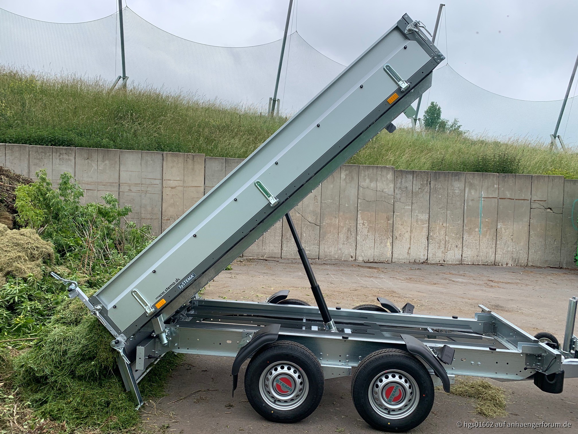 gekippt und abgeklappte Pendelbordwand = knappe Bodenfreiheit, aber es reicht (ca. 5cm)