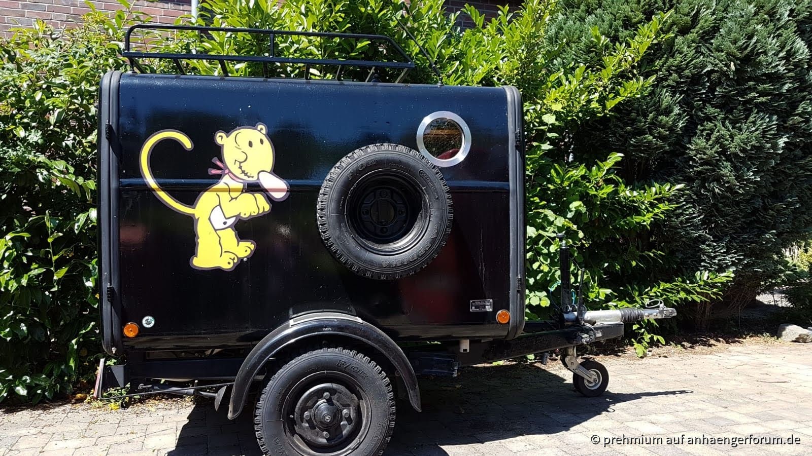 Ehemaliger TSA (Bj. 1988) umgebaut zum Schlafanhänger mit Batterie, Solarzelle (zum Laden), Truma 1800 und Gaskocher.