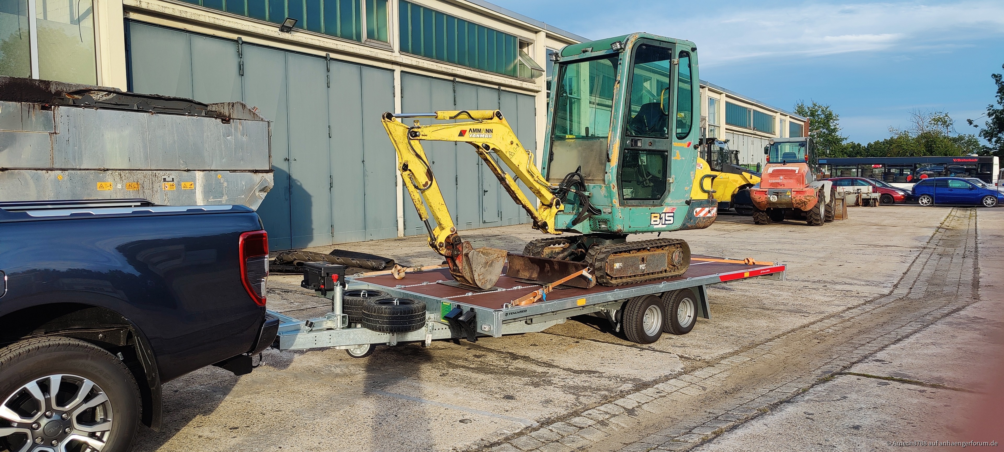 Transport eines Minibaggers auf einem Hochlader